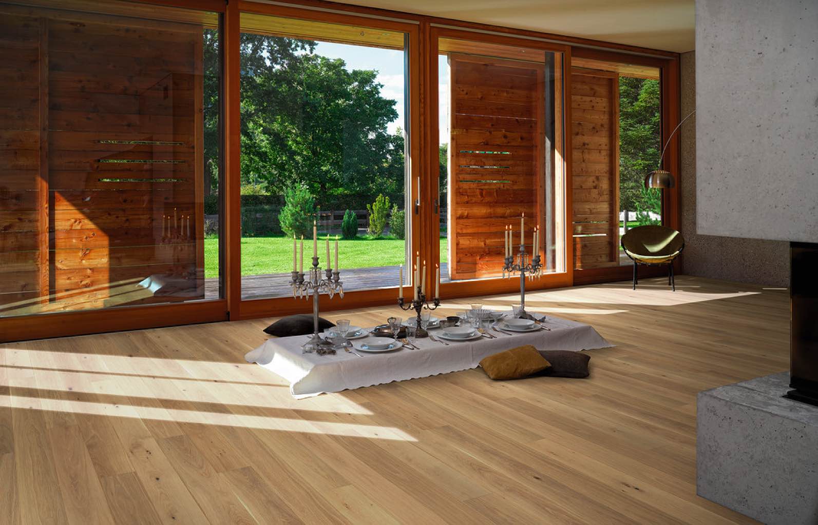 Ob als Landhausdiele mit moderner 4-seitiger Minifase, die den Dielencharakter unauffällig hervorhebt und betont, oder als Schiffsboden. Der Bodenbelag verleiht Ihrem zu Hause eine warme Atmosphäre und durch die Auswahl der Selektierung des Holzes können Sie den Parkettboden Ihrem Geschmack und Einrichtungsstil anpassen, vom rustikalen Ambiente bis hin zum modernen Loftstyle.