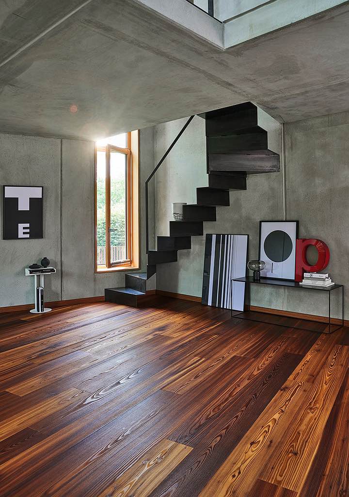 Der natürliche und besondere Charakter der Parkettböden wird durch die gebürstete Oberflächenstruktur hervorgehoben und durch die Oberflächenveredelung mit Naturöl, Lack oder Mattlack geschützt.