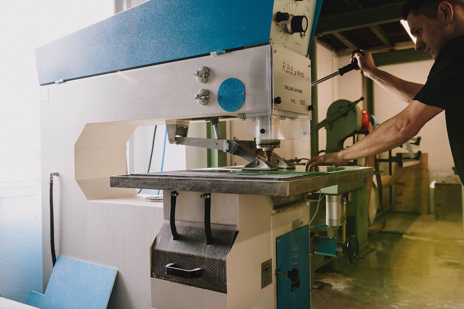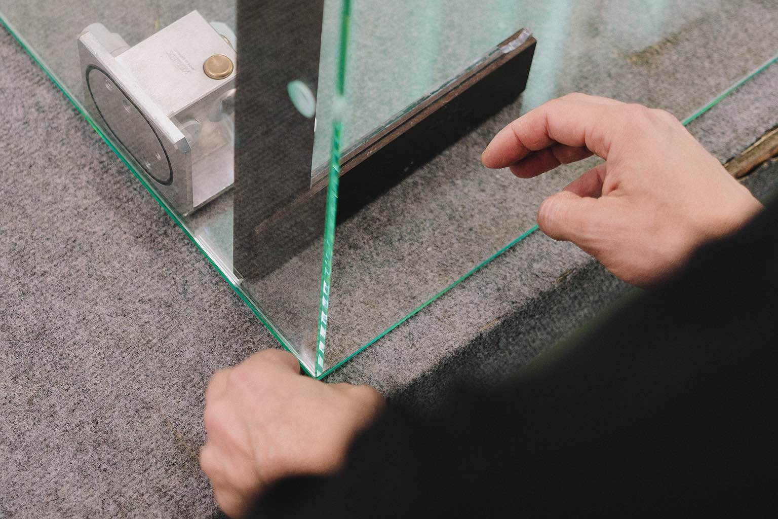 Dank unsere eigene Glasschleiferei und Glasbearbeitungswerkstatt sind uns in der Ver- und Bearbeitung des Glases kaum Grenzen gesetzt. Egal ob die Glaskante schleifen und polieren oder das Glas bohren.