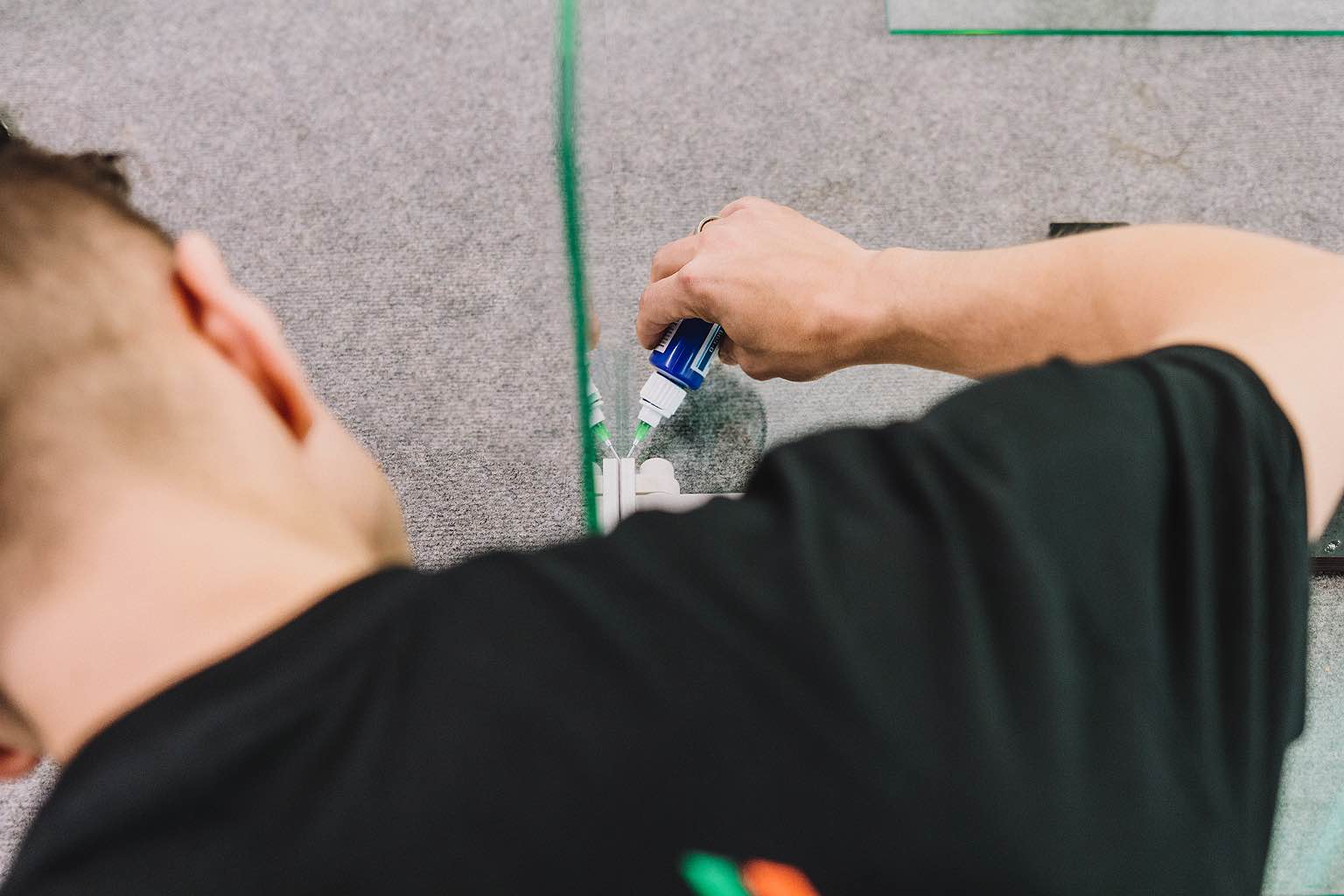 In unserer Klebewerkstatt wird mit Kreativität gearbeitet, um Ihre Ideen aus Glas in die Tat umzusetzen.